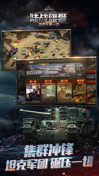 陆战雄狮百度版是一款3d军团战争手机游戏,玩家可以来这里体验真实的军事战斗,同时还有自定义坦克的玩法,全新的3d地图场景等你来体验,同时全部军事的武器装备等你来体验,还有更多特色竞技场等你来体验,喜欢的朋友快来下载吧。