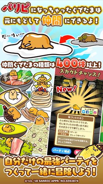 通过战斗,可以让勤劳蛋蛋变回「无干劲的原本的懒蛋蛋」!总计有400多种能力技能不同的蛋蛋,以全图鉴为目标进行收集吧!
