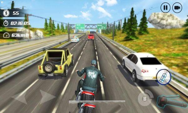 这款摩托赛车游戏不是单纯的竞速游戏,游戏中不再是所有玩家在同一个起跑线快速冲向终点,改变了游戏规则,玩家选择自己心爱的摩托驾驶,奔驰在城市的公路上,需要躲避其他玩家的撞击,迎面而来的车辆和路边的障碍物,努力一直前进,获取更高分数。