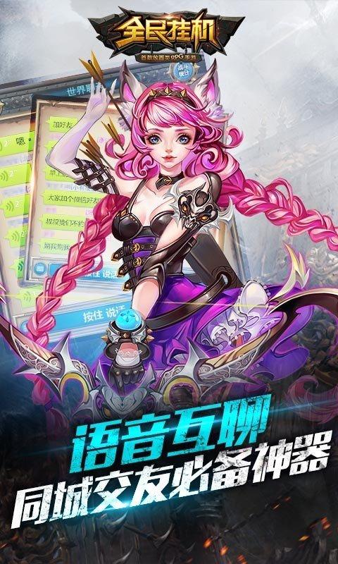 《全民挂机》是最新最休闲的新派放置RPG手游,游戏帮你内置外挂,24小时经验赚不停,麻麻再也不用担心我没时间游戏了。同城显IP交友,内置语音聊天系统震撼开启,让你游戏不再单调,全新公会战火爆打响,万人同服,酣畅淋漓的战斗,无论你有什么仇什么怨!带领你的兄弟们为了荣誉前进吧!