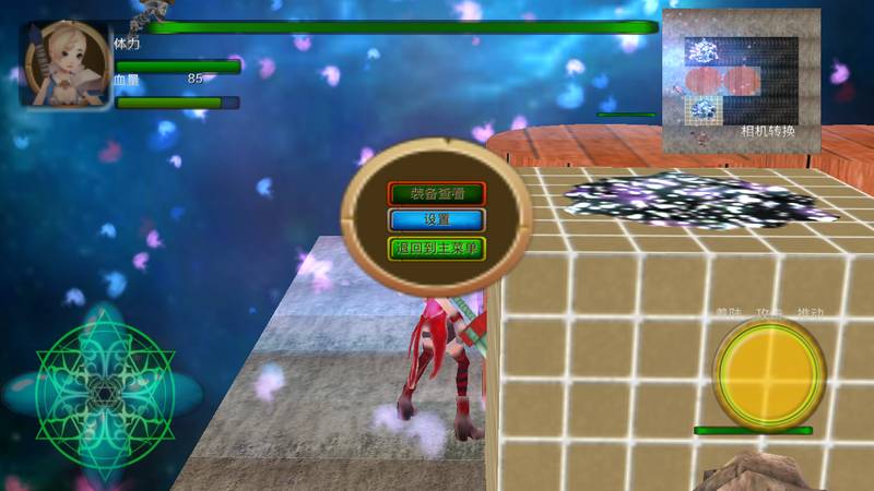 控制补天神将驾驶战机开拓地图,游戏下方的魔方是供玩家们了解游戏和调游戏设置的!