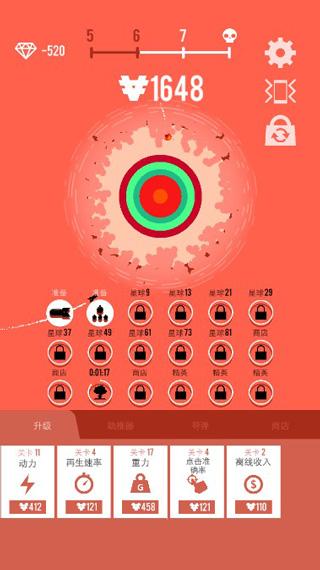- 升级轰炸时的动力、再生速率、重力、点击准确率和离线收入;