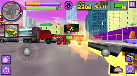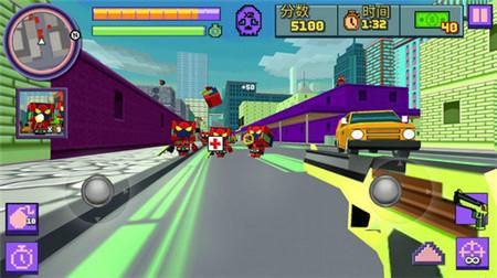 玩家要扮演的是一个方块人,根据任务去消灭更多的方块人和汽车,不同的关卡不同的任务不同的场景,玩家可以自己选择射击视角,不需要将敌人全部消灭,只要完成任务就能过关,一场刺激的像素枪战开始啦。