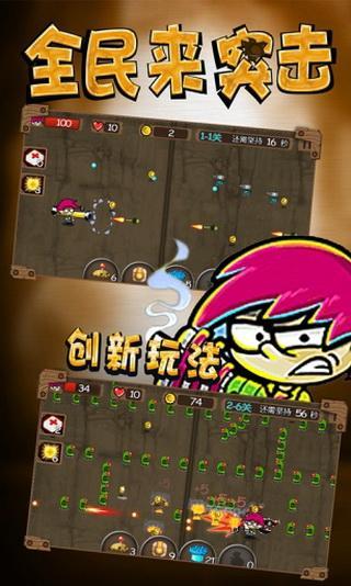 《全民突击》全新团队PK版本震撼来袭,快来和好友一起PK吧!全3D绚丽画面,打造电影级视觉盛宴;经典名枪、炫酷战车,构建军迷博物馆;最强佣兵团养成系统,晋升全能指挥官;闯关模式、无尽模式,再现真实战场;真人实时对战,不再一个人寂寞打枪! 快加入《全民突击》,体验枪战快感,激爽战斗!