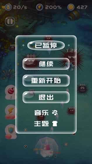 2、美丽的海底背后充满了危险,到处都是邪恶的海胆,玩家需要击退海胆,逃出海底;
