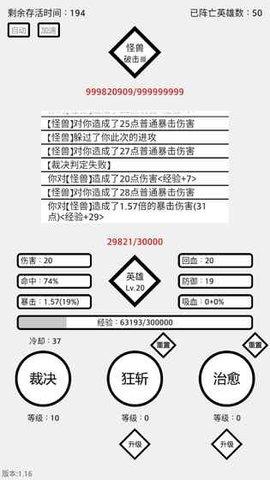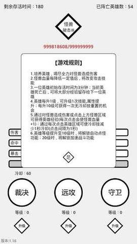 5.通过对怪兽造成伤害或点击上方怪兽区域可获得英雄经验(每次点击会使怪兽血量+1);通过每次点击英雄区域可使冷却技减少1秒冷却(点击间隔为1秒)