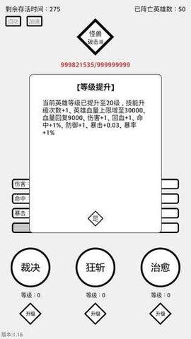 6.英雄等级提升至10级时,将解锁自动点怪功能;20级时,将解锁加速战斗功能