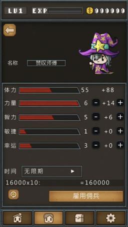 英雄可在雇佣界面进行招募,其中有分为7天、14天和无限期的时间限制,且初始化属性的加点也影响着招募的价格。