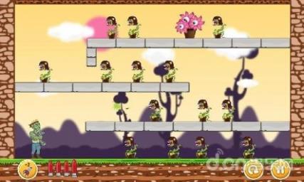 《僵尸与植物》是一款新颖的弹跳射击游戏。这一次来个角色互换吧~~你是一个可怜的僵尸。。这里的植物都要吃了你。但是你的手里有枪!子弹也并非普通的哦~~它能弹射。