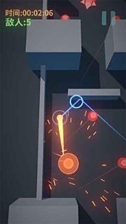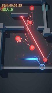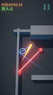 在游戏中,你将控制一个高速移动的小球,躲避敌人的枪林弹雨,利用弹射击杀敌人。游戏中有无限制的子弹时间,你可以随时触发子弹时间来思考下一步的行动。游戏的目标很简单,消灭所有敌人。