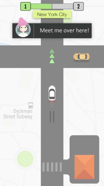 4、点击并按住开车,将客人送到目的地即可赚取金钱。