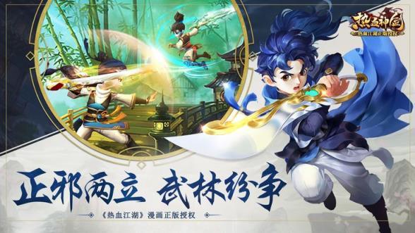 热血江湖是由官方唯一正版授权、龙图游戏发行的首款Q版武侠MMORPG手游。清新明亮的游戏场景,活泼可爱的人物造型,风趣幽默的游戏剧情,构建出一个轻松愉快的江湖世界。游戏不仅完美复刻端游五大经典职业,以及正邪势力战等经典玩法,更加入自创武功、神兵变身、帮会押镖等创新玩法。时装、宠物、好友、帮派,社交养成一应俱全,更可自由野外PK,激情战斗快意恩仇!让我们携手挚友,青春热血,再续江湖!