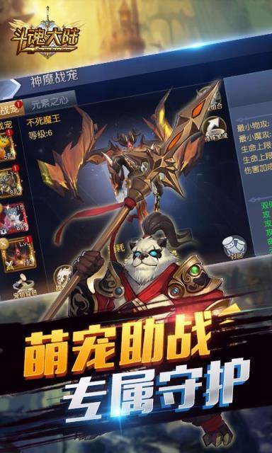 《斗魂大陆》中的萌宠们作为冒险伙伴将一直陪伴在勇者们的身边,并且通过细心培养,最初小小的它们还将进化为足以扭转战局的得力帮手。每只宠物拥有一个主动技能可以给玩家在战斗中一定帮助,萌宠们正在斗魂大陆上静待着与勇者们的相见。