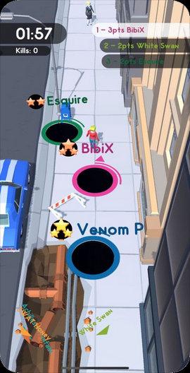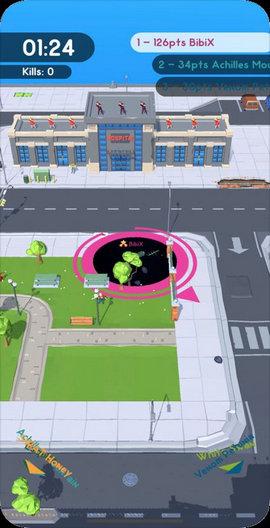 想要获得高分的话,操作的就必须有侵略性,开局正常吃这些小车子,树、路灯这样的东西,等我们的黑洞体积大一些了,就赶快去吞噬其他玩家的黑洞,这样才是成长最快的方法。