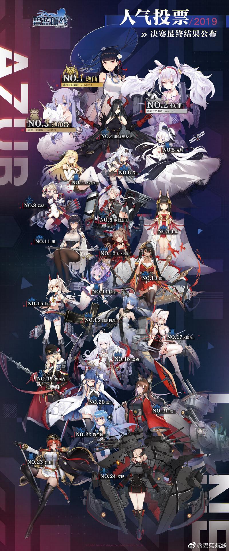 《碧蓝航线》人气投票决赛成绩一览 逸仙勇夺国服第一
