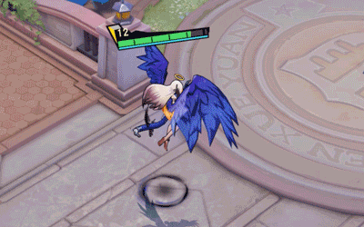1技能【斜掠】四不像扇动深蓝色的羽翼,弧形盘旋掠过,袭击沿途敌人,在空中撒落飞散的羽毛。