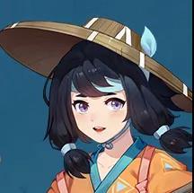 头戴竹笠,缎带随风飘摇