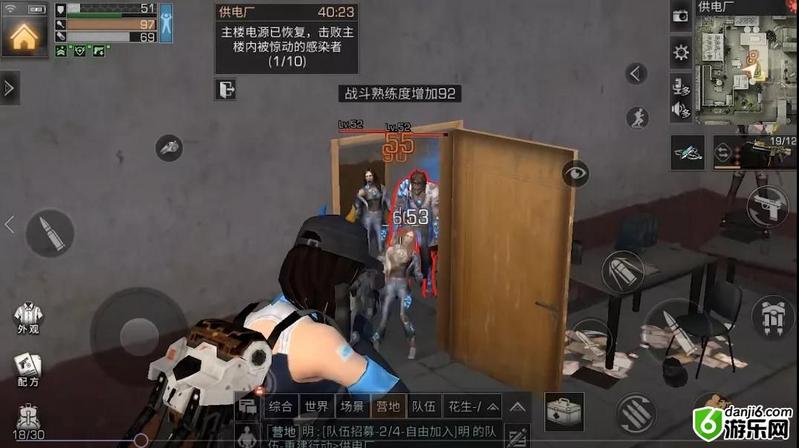 可以去到左边最里面的房间,跳上房间内的箱子“无敌点”清理感染者。