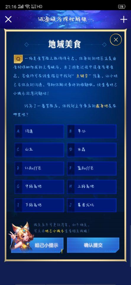 《王者荣耀》地域美食答案是什么 主宰最后的藏身地在哪里