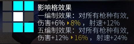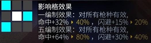 提升我方全体射速15%~25%(原为12%~22%)(装备"APS专用枪托"后额外提升全体伤害4%),持续5秒
