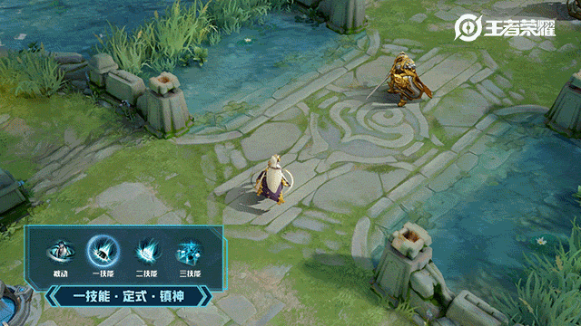 弈星的大招是由一股浓墨从天而降,在地面上散发成一块巨型的金色棋盘,棋盘变得金光闪闪,视觉效果看起来冲击力更大,并且充满高级感。