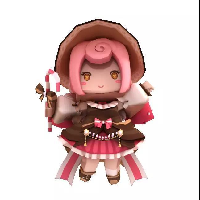 糖果粉的头发,巧克力配色的百褶裙,手上俏皮地挥舞随身携带着长长的拐棍糖,端庄之中多了一些俏皮可爱。