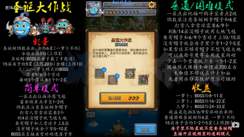 为了boss的徽章,要在小怪层通过击杀小怪收集10个雪球。同时双数层会出现圣诞树,点击会掉落各种道具。
