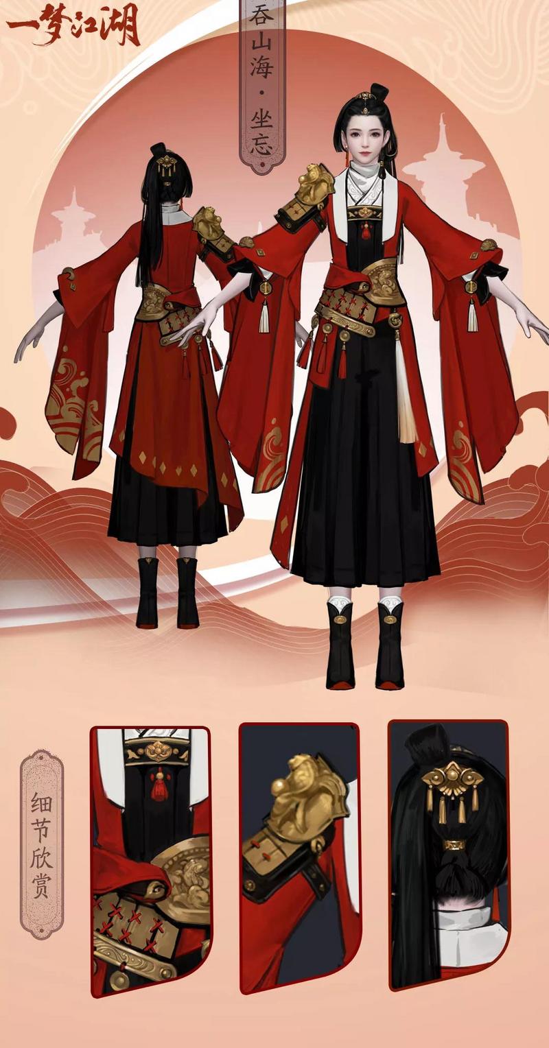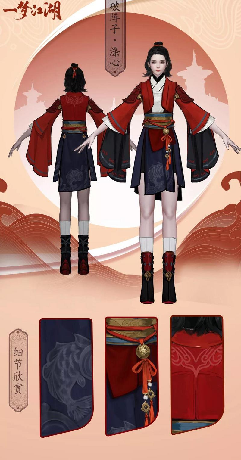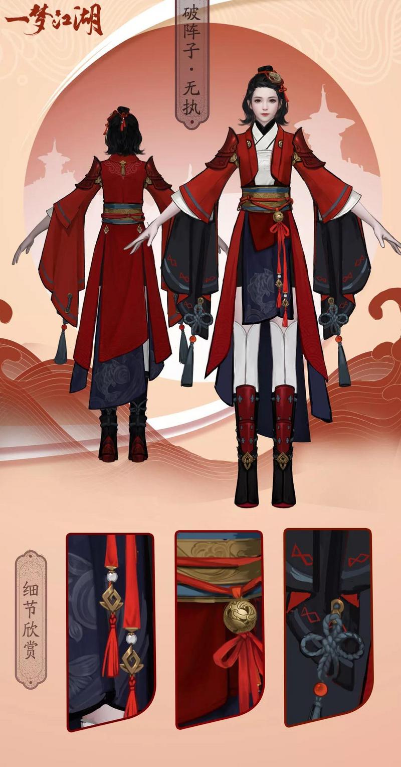 醉红尘·无执由天道盟颁发给在战场上屡获战功的沧海侠士。金鱼和海浪的纹样交织在一块,红色的肩甲十分少见~精致又不乏实用性,在行走江湖时能起到防身的功效。