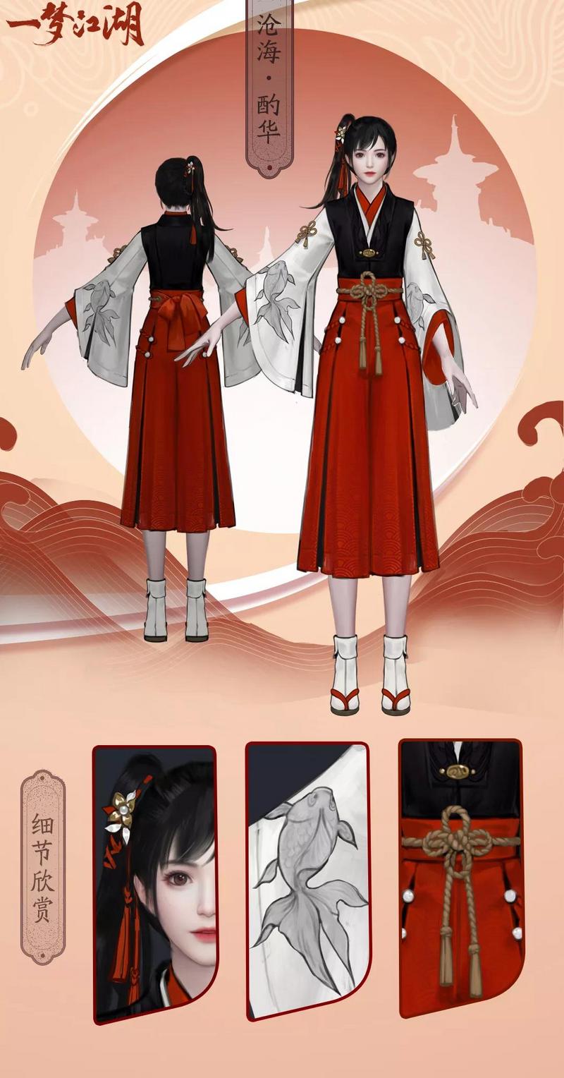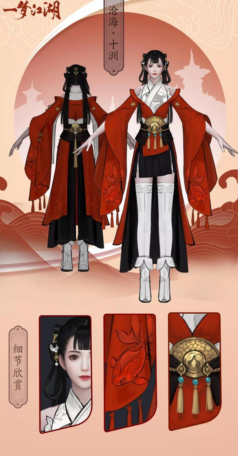熟悉的双发髻配上斜分刘海,瞬间成熟了不少!脖间戴了黑色颈饰,手上戴了白色手套,讲究!衣服整体的设计和小沧妹的差不多,却更显窈窕身材,衣服前后点缀的两枚锦鲤,更添特色~