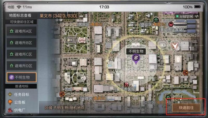 不明生物出现后只有20分钟将其击败,否则会让不明生物逃走,建议幸存者们组队前往莱文市不明生物。