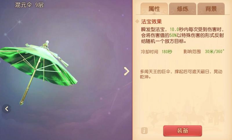 五、【混元伞】:10秒内受到伤害,反射随机一个敌方目标