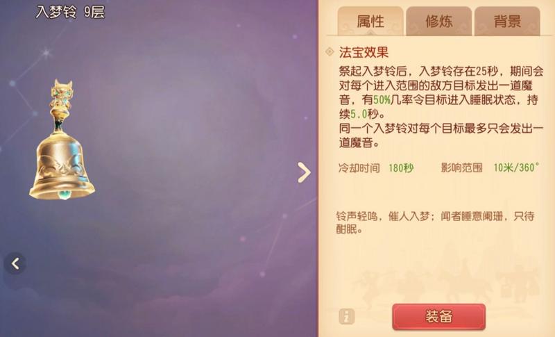 十、【入梦铃】:进入范围内的敌方会有几率进入睡眠状态