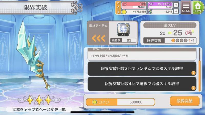 突破武器需要用到对应星级的超越石,3星武器只能通过3星超越石突破。超越石可以通过活动奖励、新宿奈落,以及在活动本中遇到的宝箱怪获得。突破武器需要耗费大量金币。在武器突破到2阶段时会随机获得一个技能,而再次突破到4阶段时可以自选一个技能。如果突破后发现是没用的技能的话可以考虑分解武器,会返还一部分制作材料。