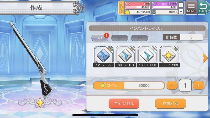武器作成中可以看到每把武器拥有的星级,和下图不同,有的武器没有1星而是从2星起步的。作成界面里显示的是制作这把武器所需的材料,这些材料通常通过打日常本和新宿奈落获得,有的时候举行的奖池活动也会掉落这些材料。