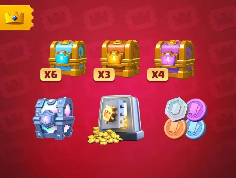 *每赢得10个皇冠可解锁一级奖励,每级奖励包含1项皇室令牌奖励和1个皇冠宝箱