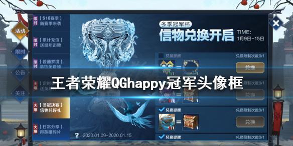 《王者荣耀》QGhappy冠军头像框怎么获得 冠军信物获取方法