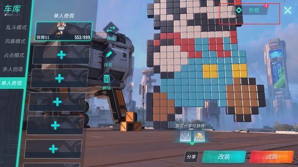 进入“车库”后,点击右上角“外观”进入“外观系统”。