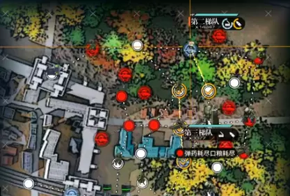 第二梯队走下一格+左一格进战,再下一个进行第二战。最后和狗粮队交换位置后撤退。