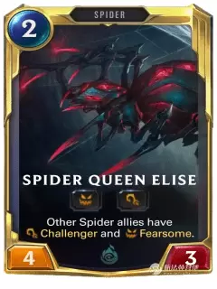 蜘蛛女皇伊莉丝恐怖,单挑(Challenger,攻击时可以选择敌方单位来阻挡它,单挑时无视恐怖能力)