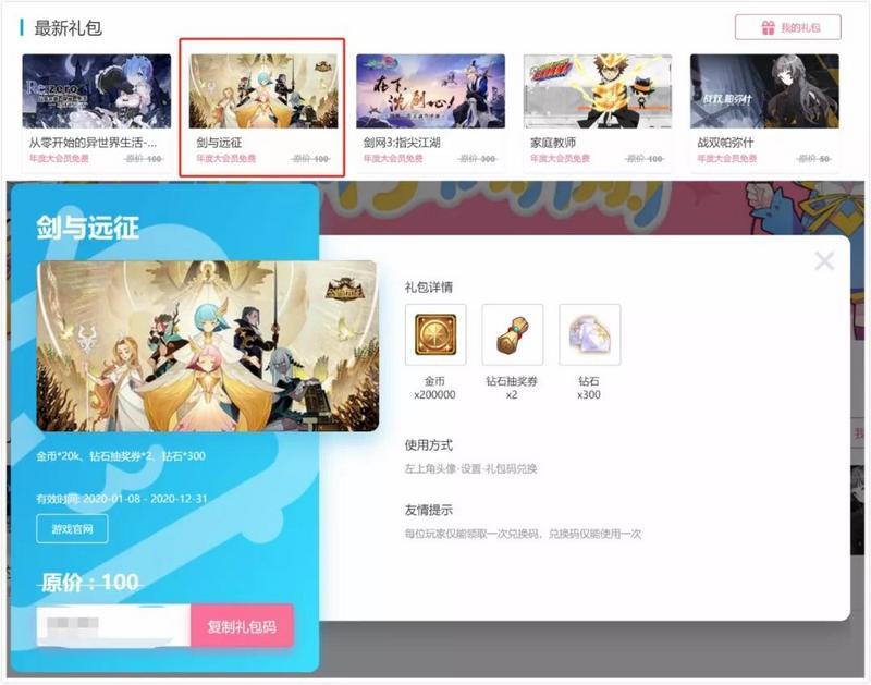 领取时限:1月17日-2月5日(兑换码使用期限到2月29日23:59)