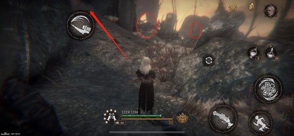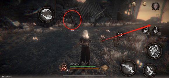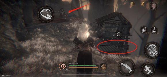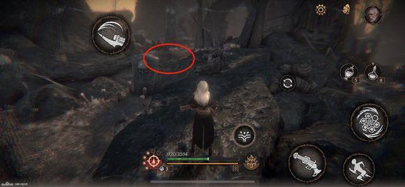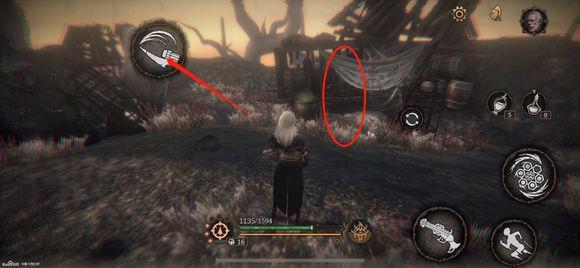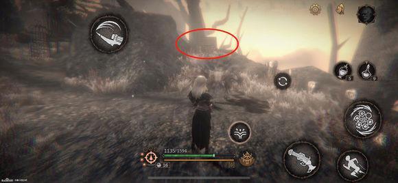 往上就会遇到小女孩的母亲,穿黑色长袍的(红圈处),接取支线任务2:【母女】并得到任务物品【布偶】,然后往右走。
