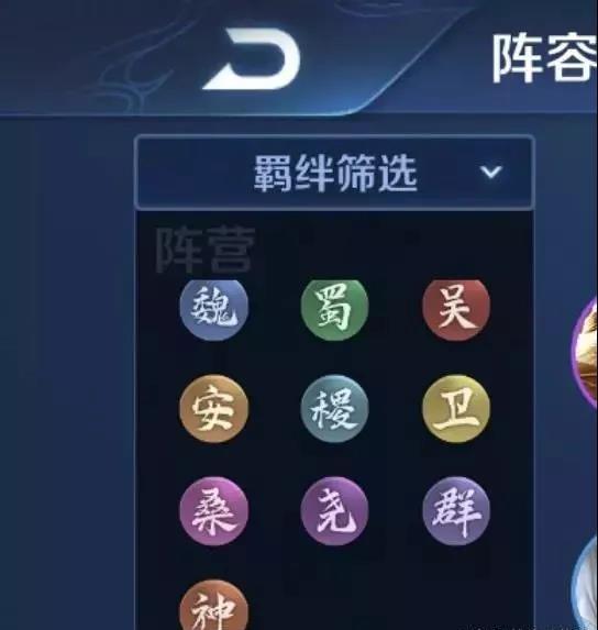 同样阵营,同样英雄职业,达成一定的数量都会产生羁绊。当前版本的阵营有:魏国,吴国,蜀国,长安,稷下长城守卫,扶桑等等。不同的阵营羁绊会产生不同的效果,这里就不一一举例了,小伙伴们自己到游戏中发掘吧。