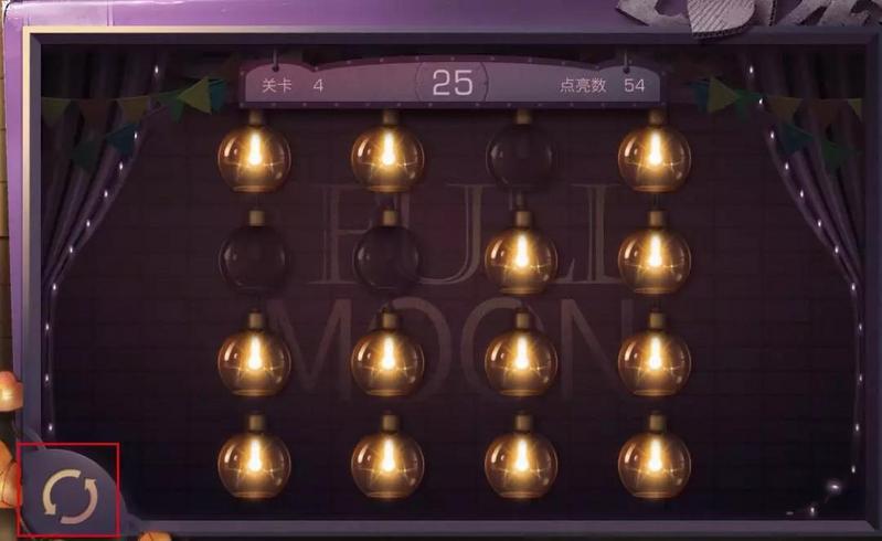 游戏过程中可点击左下角刷新按钮刷新当前关卡。刷新时,当前关卡已点亮灯数不予记录。