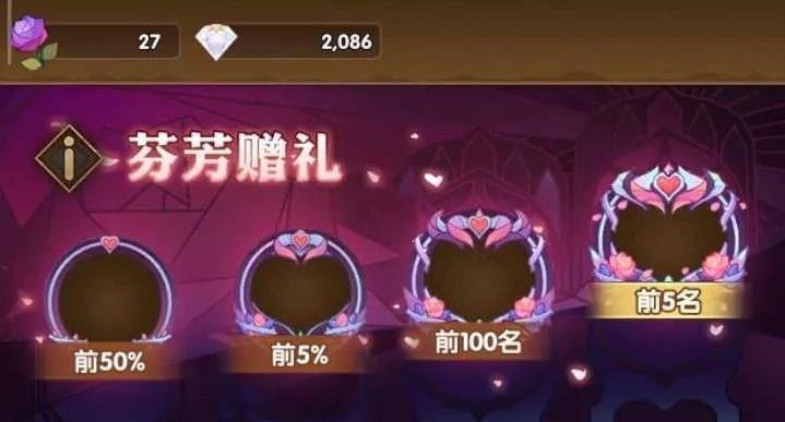 全服前五名,前一百名,前5%,前50%有特殊的头像框奖励。