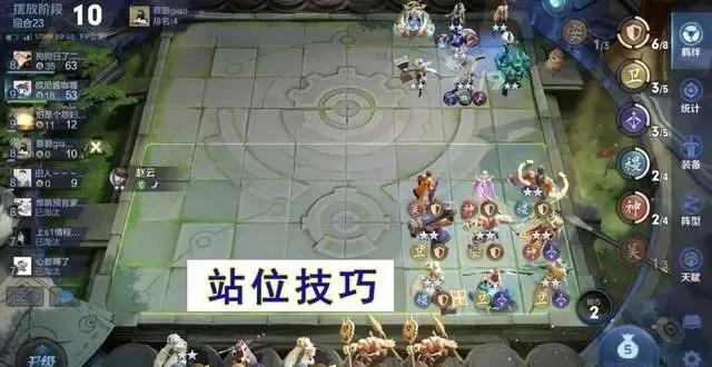 3. 站位:如果你的对手是刺客,肯定要选”保持阵容“天赋把自己龟甲起来就不怕了;魏国打吴国就要把甄姬放后面对准输出点;战士阵容打射手阵容就要一字排开往前顶。