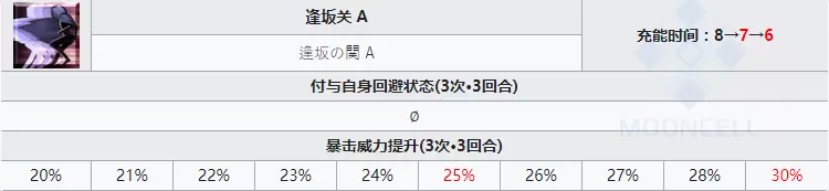 3次3回合的回避效果使得清少纳言的生存能力相当不错,暴击威力提升也是3次3回合,基本可以保证用的出去也不用看发牌员脸色。比较遗憾的是30%的幅度有些低了。