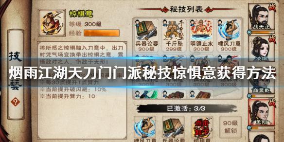 烟雨江湖天刀门门派秘技惊惧意获得方法