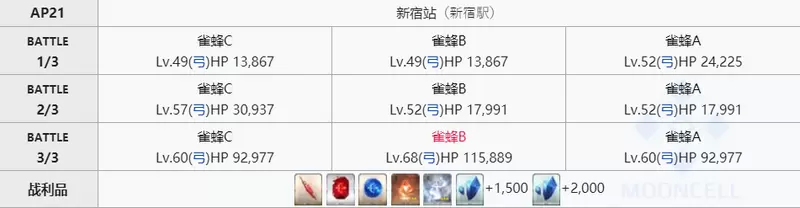 常见的大量消耗从者包括:教授/土方岁三(216)、燕青/武则天/哪吒/浅上藤乃/泳装肯娘/泳装大龙娘/圣诞南丁(180)、医生/哥伦布(144)