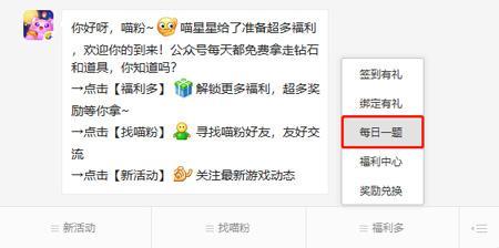 第一步、打开【天天爱消除】公众号,在下方的菜单栏中选择【福利多】-【每日一题】,触发每日一题活动