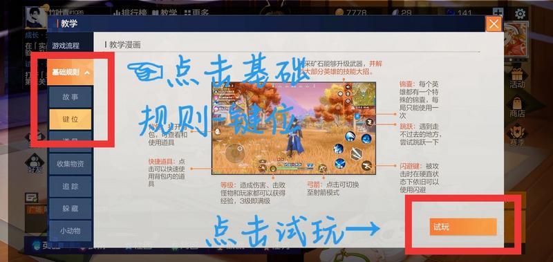 然后点基础规则栏下方的键位,再点试玩就可以进入地图中。